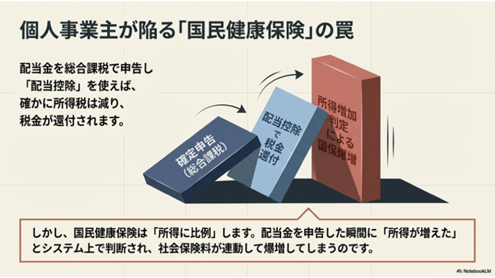 ところが個人事業主やフリーランスの場合、この配当控除を使うと社会保険料が爆増するという罠があります。